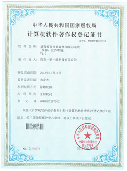西安一筆一畫科技有限公司擁有《3C管理體系認(rèn)證》|《3A信用等級(jí)》|《展館雙甲資質(zhì)》《招投標(biāo)證件》|《展覽業(yè)10大影響力品牌》|《環(huán)藝雙甲資質(zhì)》|《禁毒教育拒毒心理測試系統(tǒng)軟著》|《飛奪瀘定橋歷史重現(xiàn)虛擬體驗(yàn)軟件軟著》|《禁毒教育世界毒情3D演示系統(tǒng)軟著》等等,是您可以信賴的展廳教育基地設(shè)計(jì)施工企業(yè)!